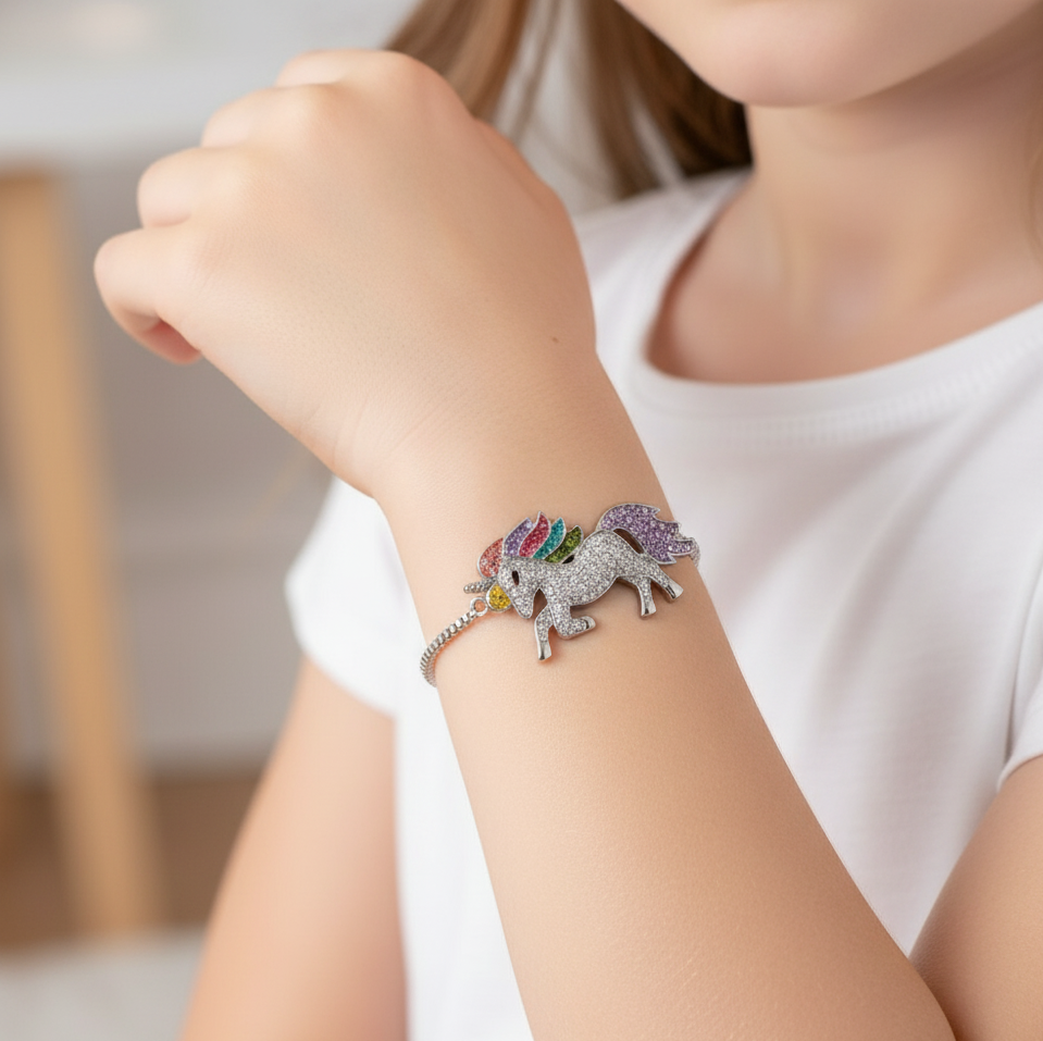 Rainbow Unicorn Silver Bracelet