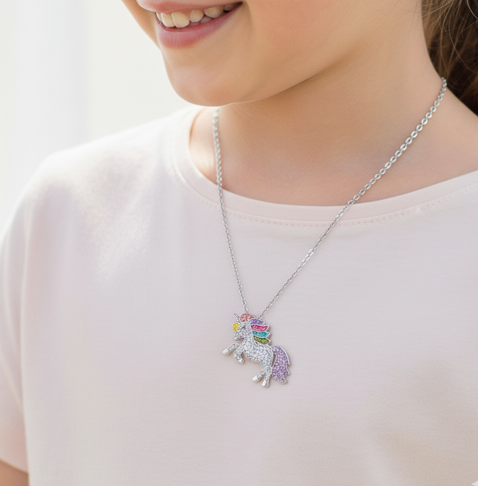 Rainbow Unicorn Silver Necklace