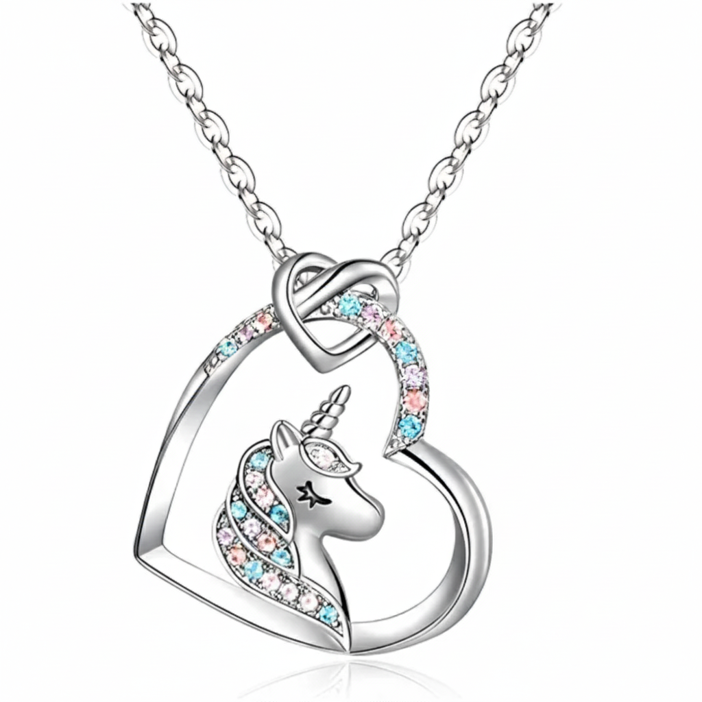RS Love Heart Unicorn Necklace Silver