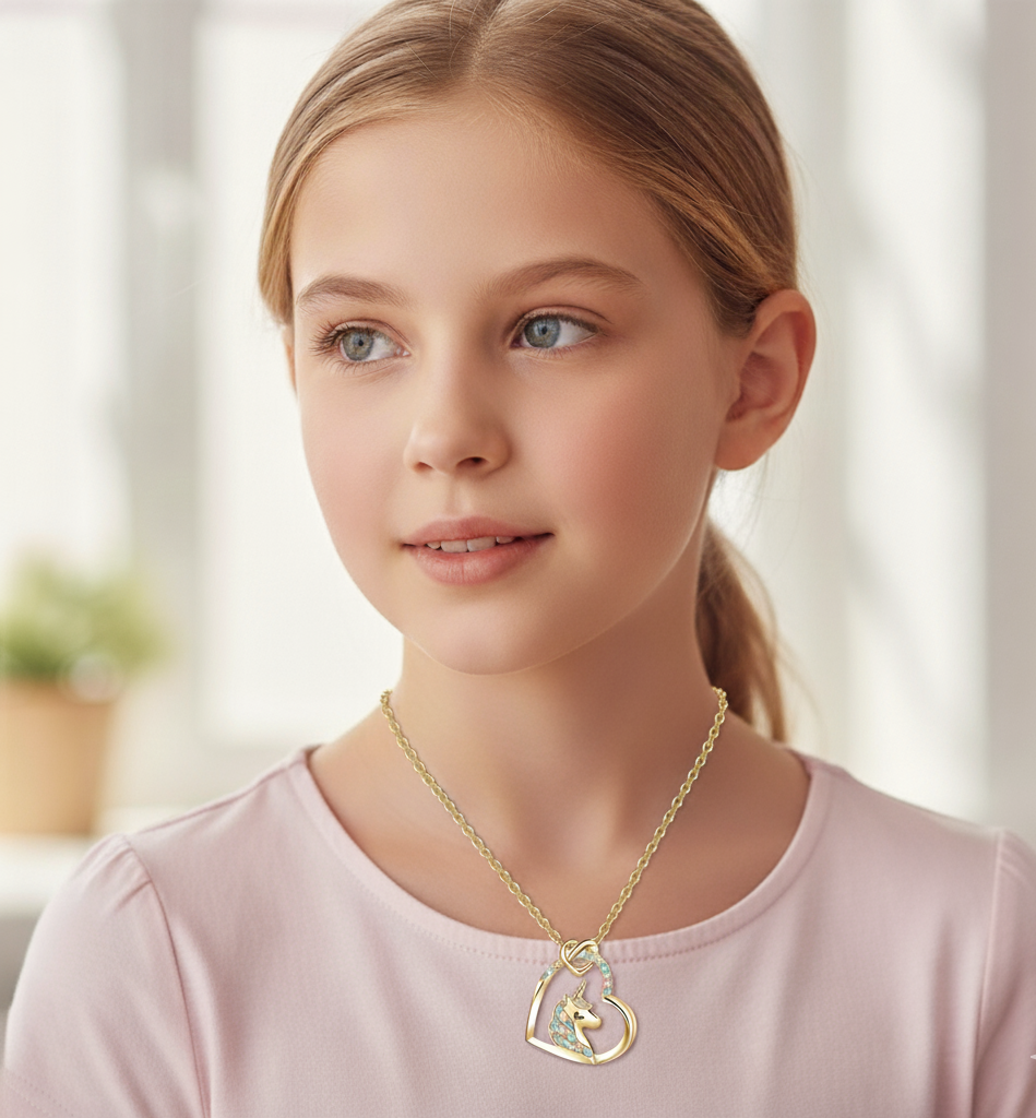 RS Love Heart Unicorn Necklace Gold