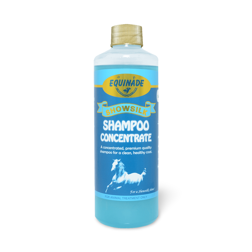 EQUINADE SHOWSILK CONCENTRATE SHAMPOO cleans off all traces of grime and dirt. At the same time, the special medicinal qualities nourish the coat and skin, preventing scurf and assisting in the control of dermatological conditions and tropical bacterial infections such as ring worm.